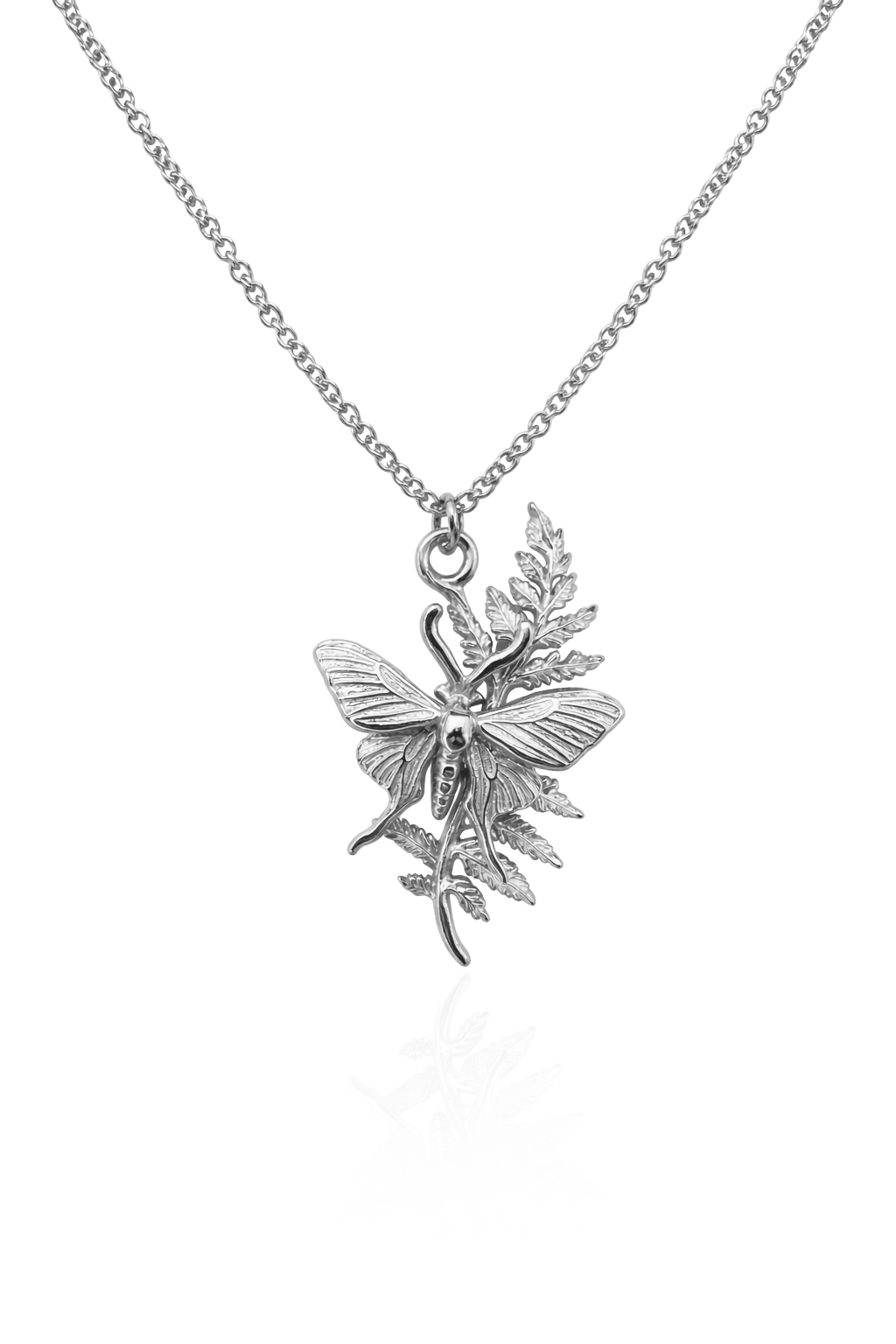 Ein Symbol für Wandel, Naturverbundenheit und die stille Magie des Waldes.Die „Forest Spirit Moth“ Kette vereint die filigrane Form einer Motte mit einem fein ausgearbeiteten Farnzweig – zwei kraftvolle Symbole für Transformation, Wachstum und die tiefe Verbindung zur Natur. Die Motte steht für Intuition und Veränderung, für den Weg durch Dunkelheit hin zum Licht, während der Farn seit jeher Schutz, Erneuerung und die lebendige Energie des Waldes verkörpert.